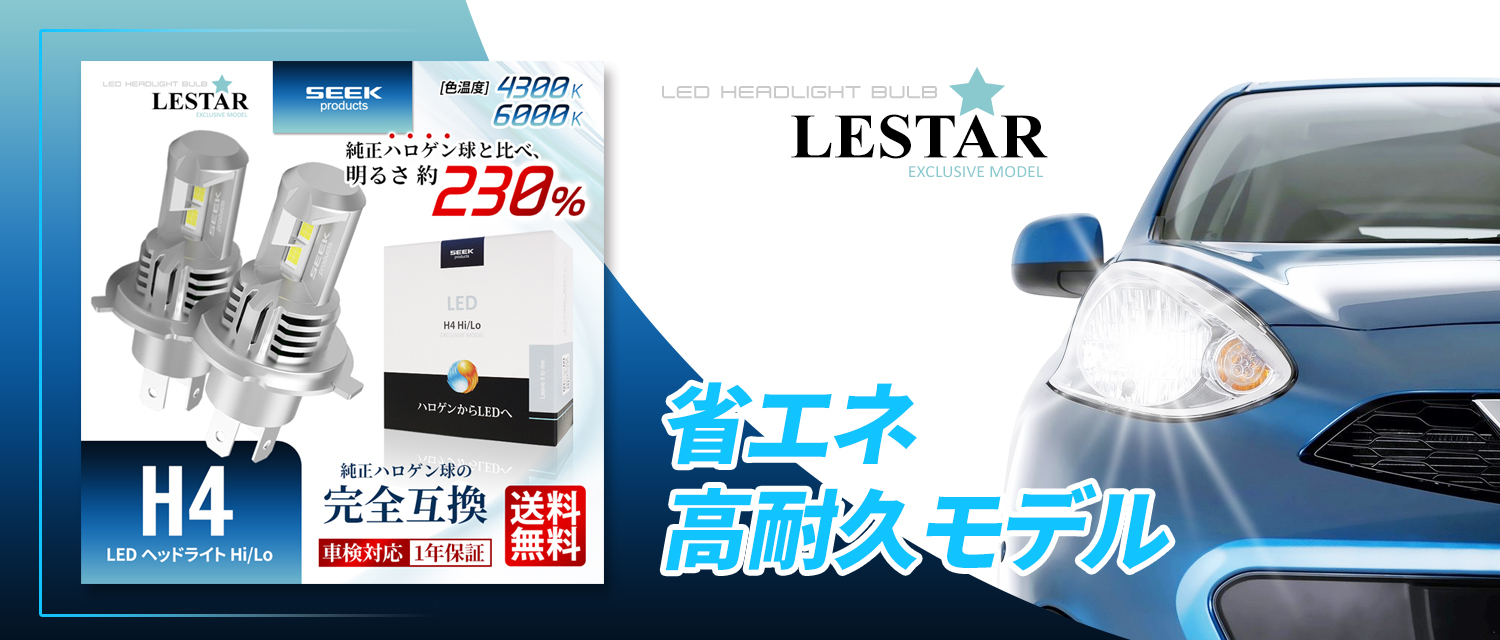 たとえば当店で販売中のH4 Hi/Lo対応LEDヘッドライト「LESTAR(レスター)」。