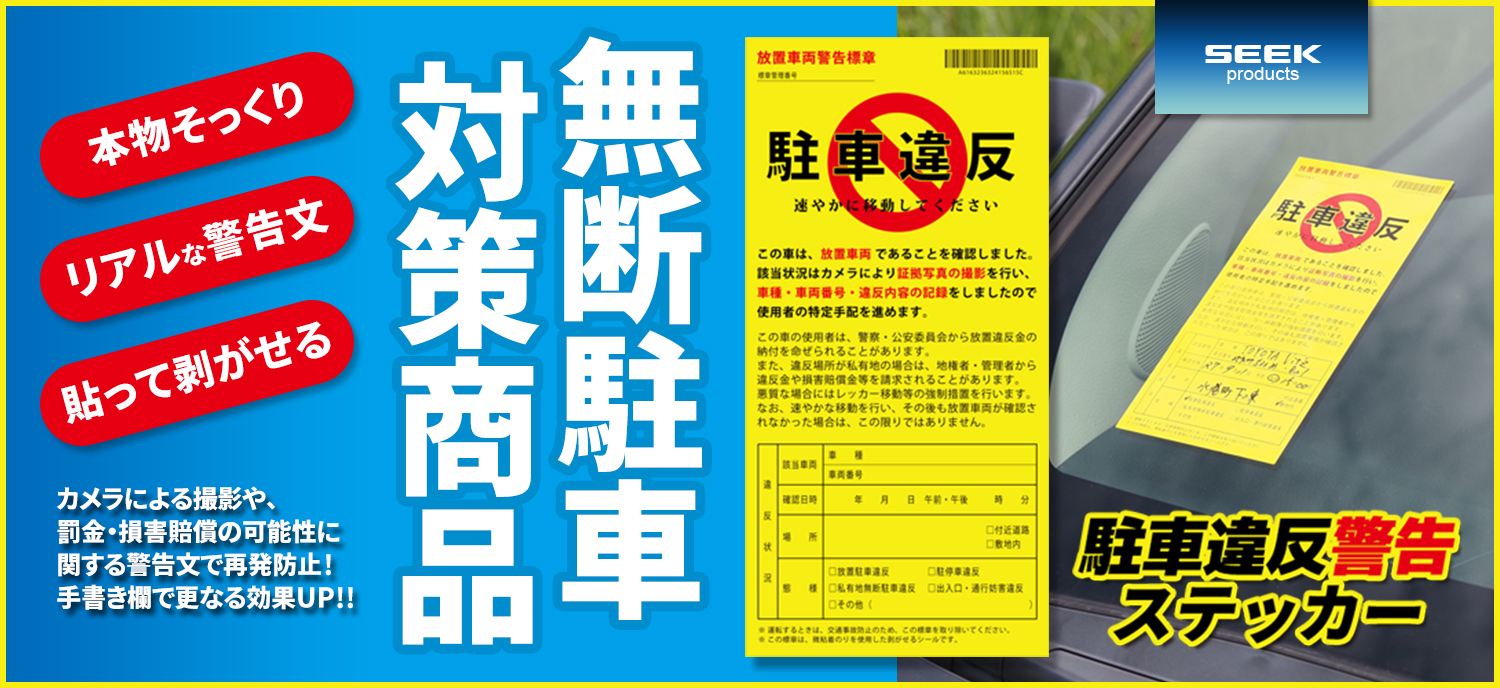 製造・販売元といたしましては、このシールを実際の迷惑駐車へ使用する事によるトラブルなどに一切の責任を負えないため、親しい間柄の方へと使うジョークグッズとして販売しております。何卒ご理解の上、ご検討ください。