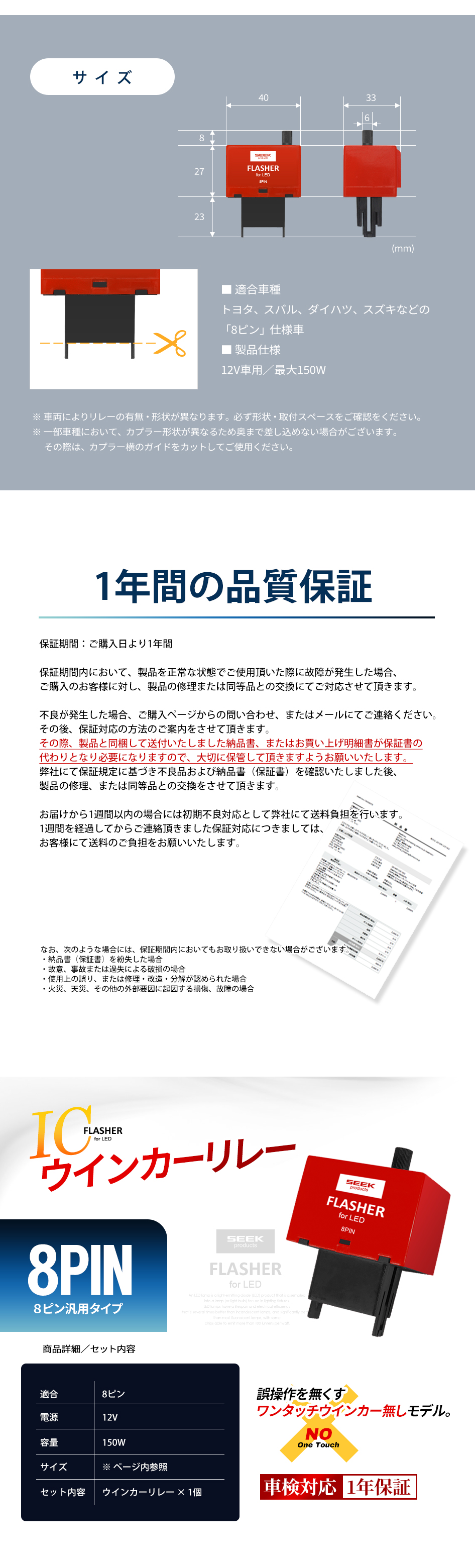 8PIN (速度調節) 純正リレーから交換するだけでウインカーLED化のハイフラを防止する速度調節機能付きウインカーリレー。 メーカー希望小売価格 2,980円(税込) ↓ 割引価格で絶賛販売中 ↓ Yahoo!ショッピング 楽天市場 amazon << 前のページに戻る