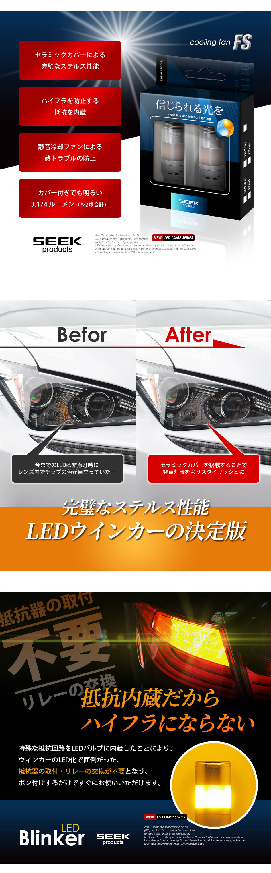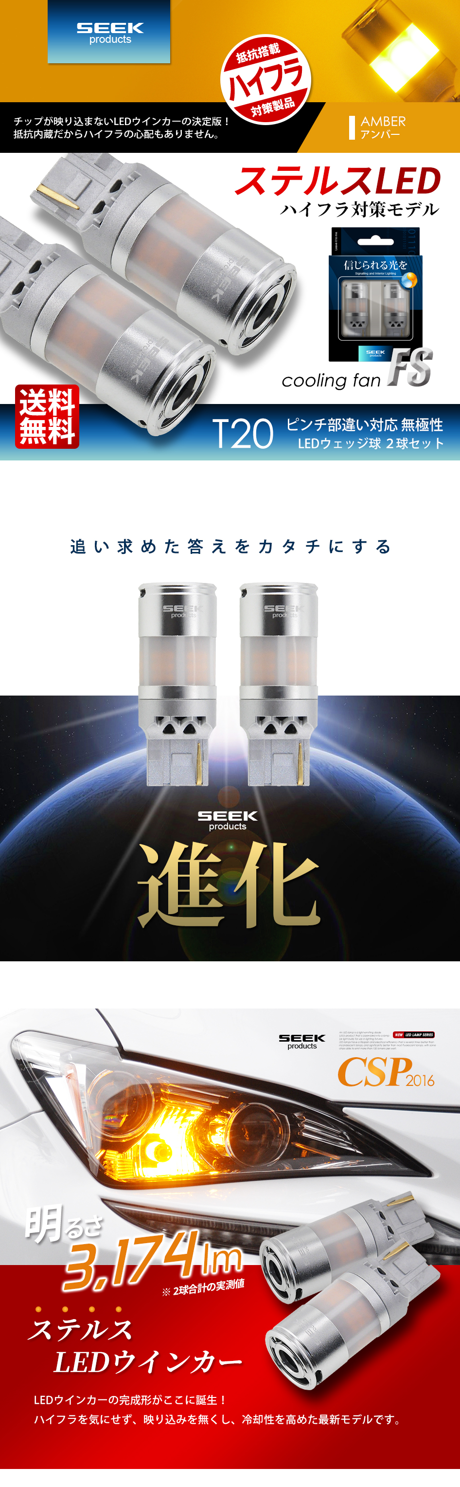 ステルス FSシリーズ ハイフラ対策モデル セラミックカバー搭載でチップの映り込みを無くしたステルスLEDバルブ。発熱トラブルを抑制する冷却FANと、ハイフラ対策の抵抗を内蔵。(形状:T20 ピンチ部違い対応、S25 150度 ピン角違い、S25 180度 平行ピン(カラー:アンバー) ※参考画像:T20 メーカー希望小売価格 7,980円(税込) ↓ 割引価格で絶賛販売中 ↓ T20 ピンチ部違い アンバー発光 ウインカー Yahoo!ショッピング 楽天市場 amazon S25 ピン角違い 150° アンバー発光 ウインカー Yahoo!ショッピング 楽天市場 amazon S25 平行ピン 180° アンバー発光 ウインカー Yahoo!ショッピング 楽天市場 amazon << 前のページに戻る
