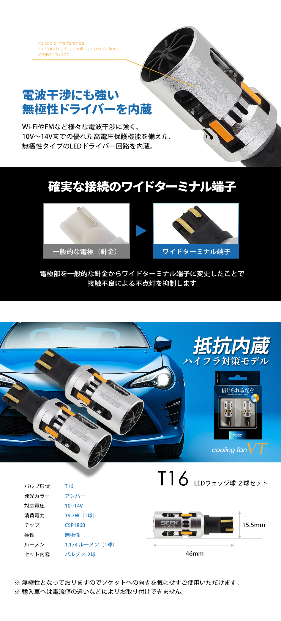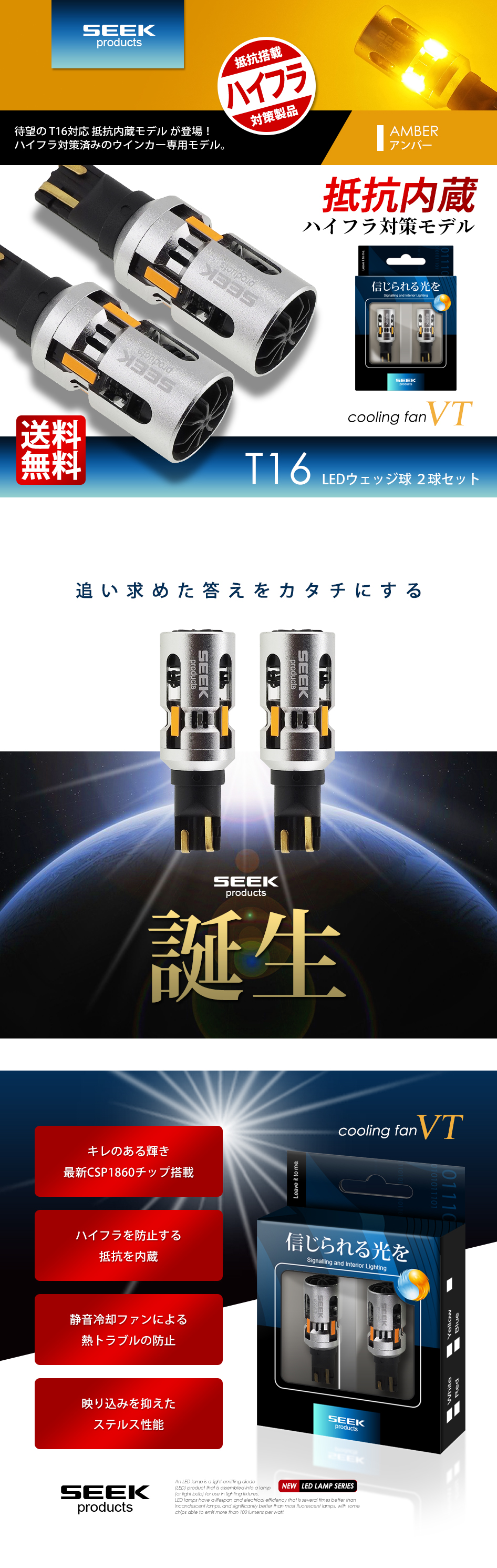 冷却ファン搭載 VTシリーズ (T16) T16対応でバルブトップに冷却ファンを搭載したLEDバルブが、ウインカー専用(抵抗内蔵)、バックランプ専用(爆光モデル)の2色展開で新登場。(形状:T16)(カラー:ホワイト、アンバー)※参考画像:アンバー メーカー希望小売価格 6,980円(税込) ↓ 割引価格で絶賛販売中 ↓ T16 ウインカー用 アンバー発光 ウインカー Yahoo!ショッピング 楽天市場 amazon T16 バックランプ用 ホワイト発光 バックランプ Yahoo!ショッピング 楽天市場 amazon << 前のページに戻る