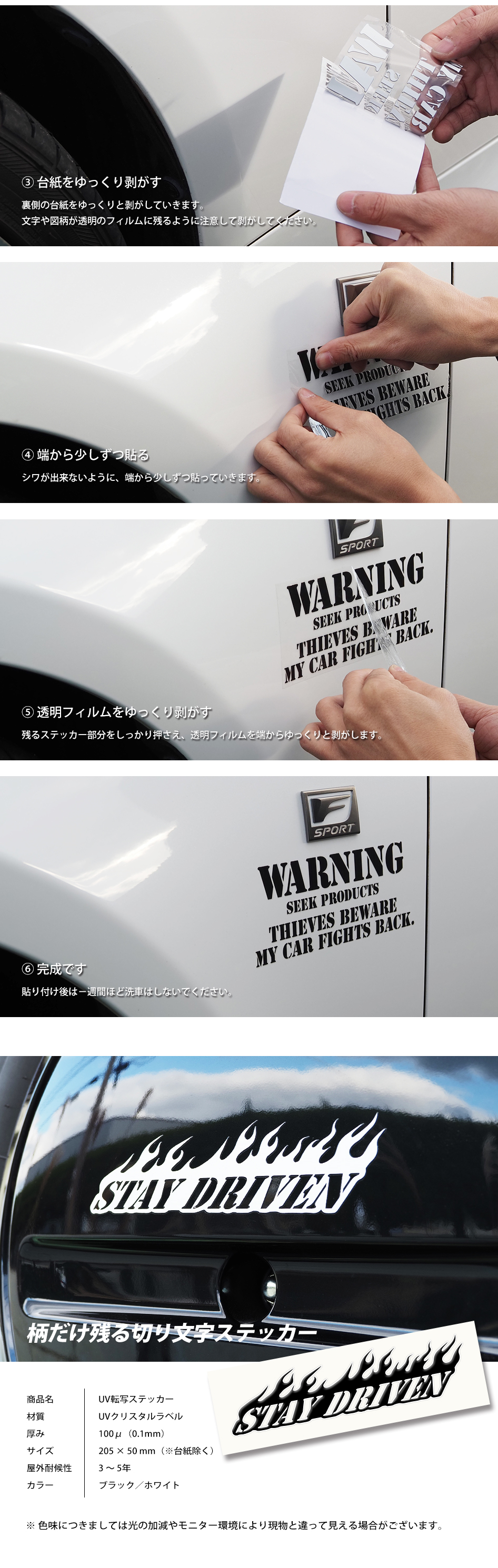 STAY DRIVEN 意欲を持ち続ける 柄だけ、文字だけ残る切り文字ステッカーです。選べる2カラー。(ブラック/ホワイト) メーカー希望小売価格 1,280円(税込) ↓ 割引価格で絶賛販売中 ↓ Yahoo!ショッピング 楽天市場 amazon << 前のページに戻る