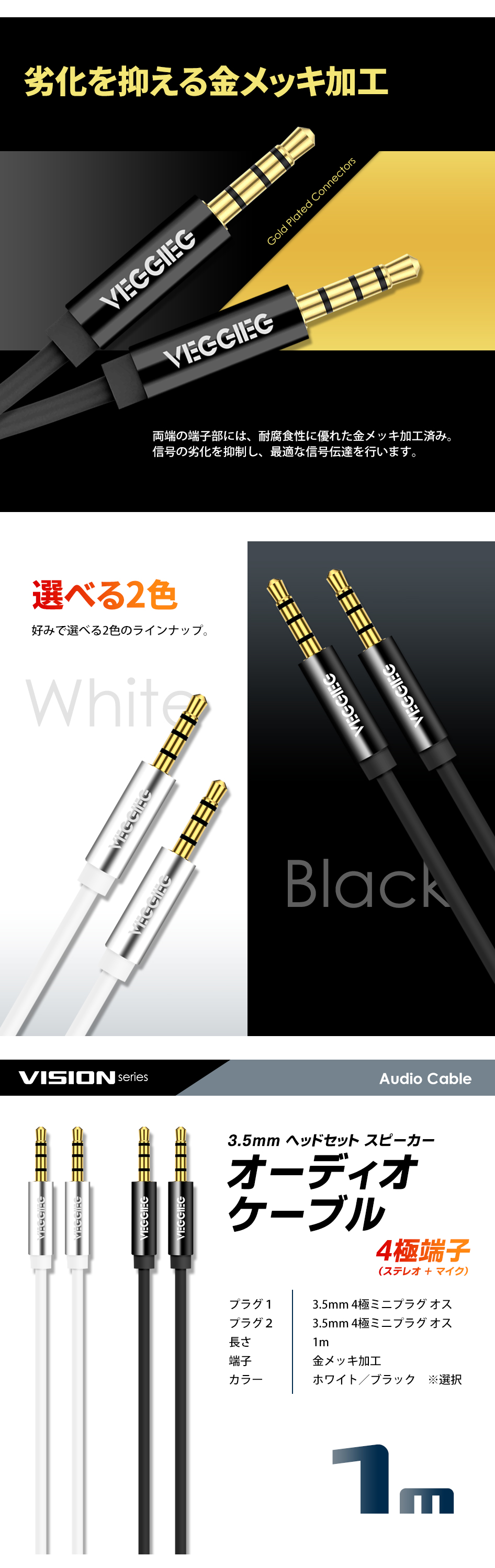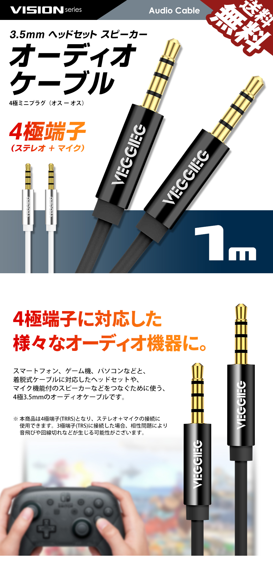 ケーブル・機器関連|音声・映像|オーディオケーブル 4極(TRRS) 1m