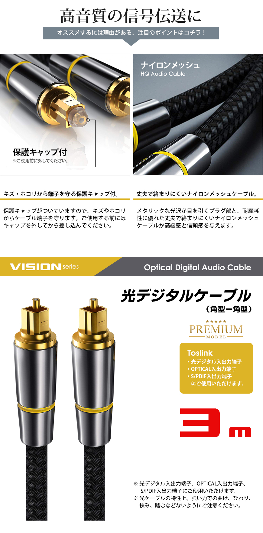 ケーブル・機器関連|音声・映像|プレミアム光デジタルケーブル 3m
