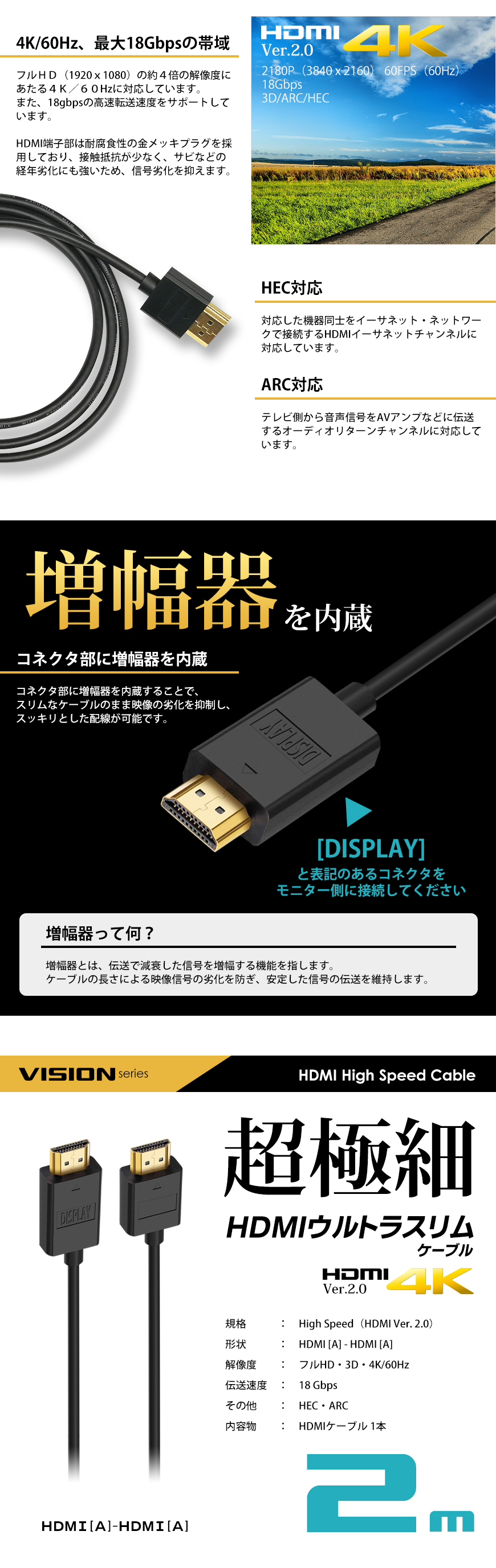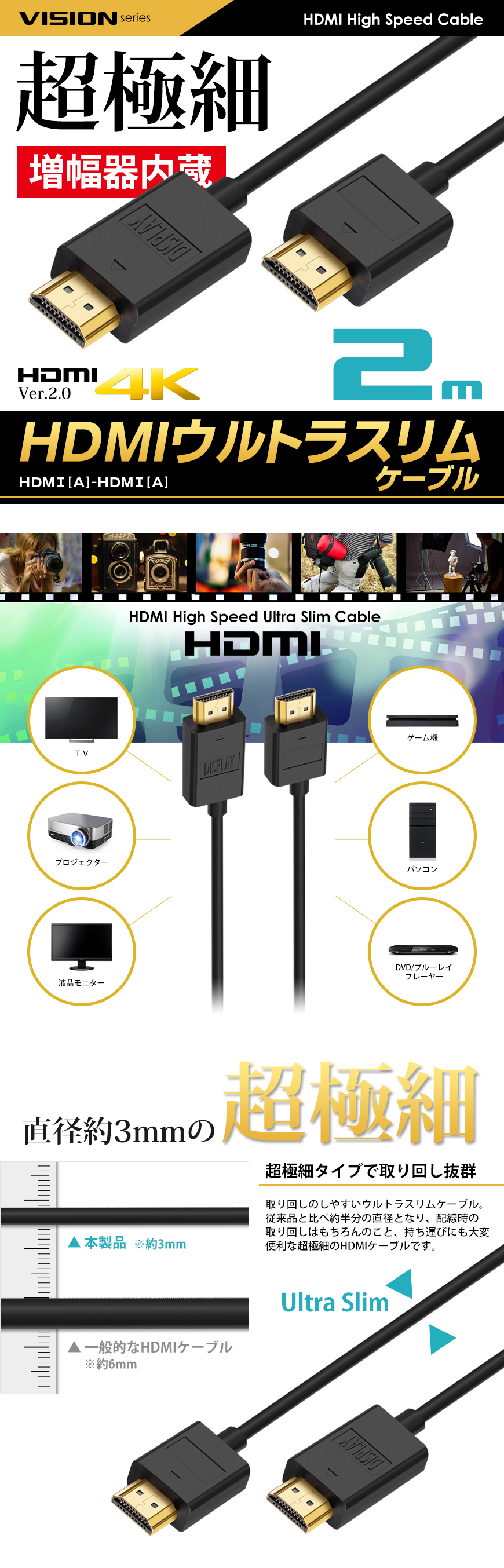ケーブル・機器関連|HDMI|ウルトラスリムケーブル 2m