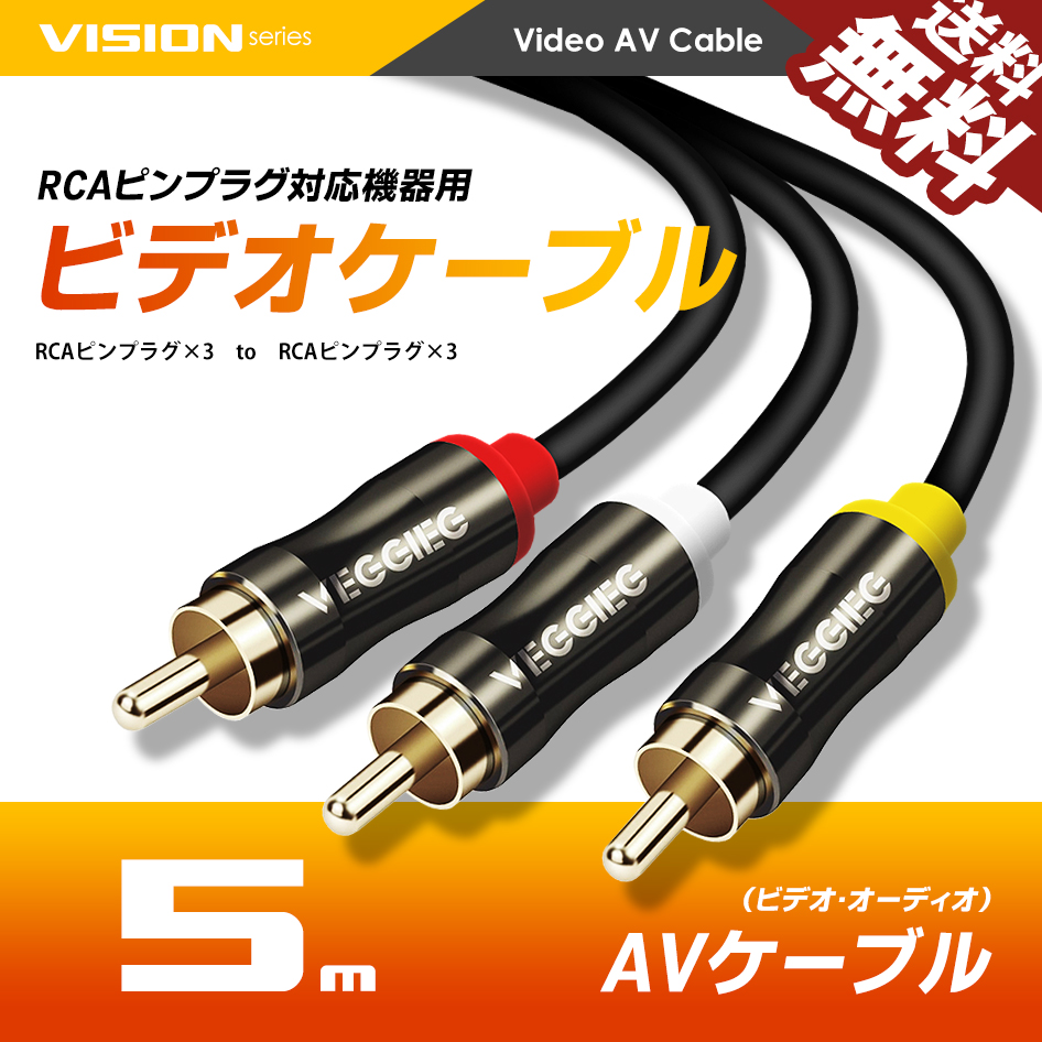 映像音声のRCAピンプラグ接続に使うビデオケーブル1ピンタイプ。(5m)